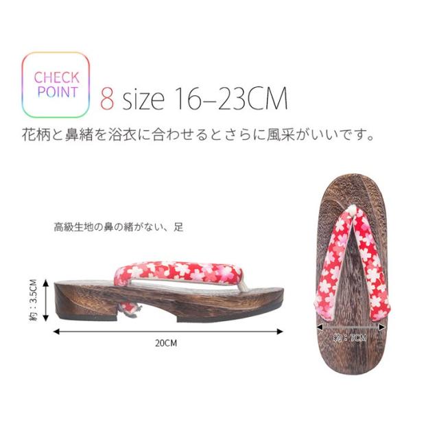 | 浴衣にぴったり可愛い和柄! 夏や暖かい季節におすすめな、子供用下駄です。 幅広で柔らかい鼻緒は足に優しく、たくさん歩かれる日でも靴擦れしにくいように工夫しています。 夏祭りや花火大会の浴衣や、カジュアルな夏着物によくお似合いです。 | |