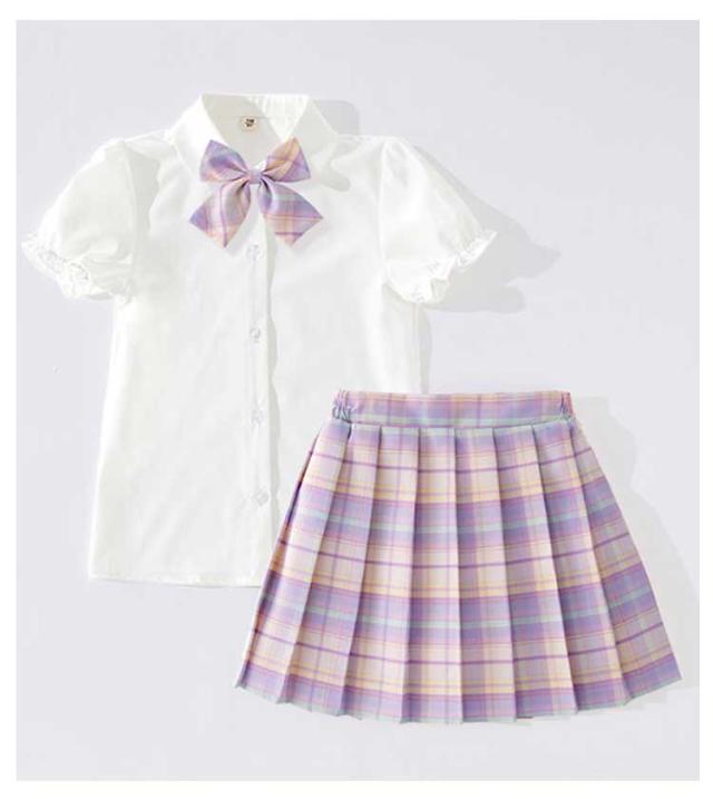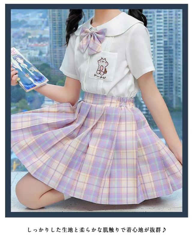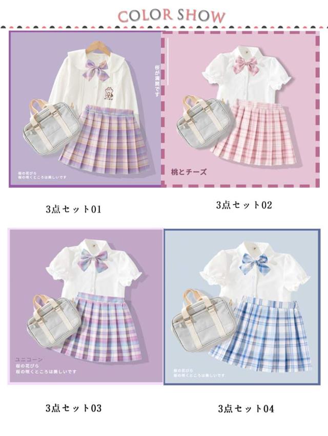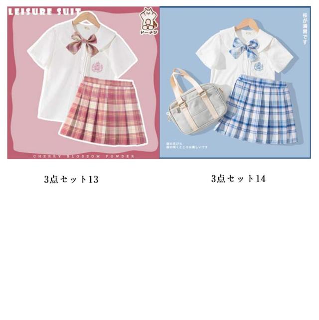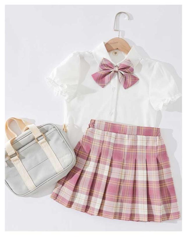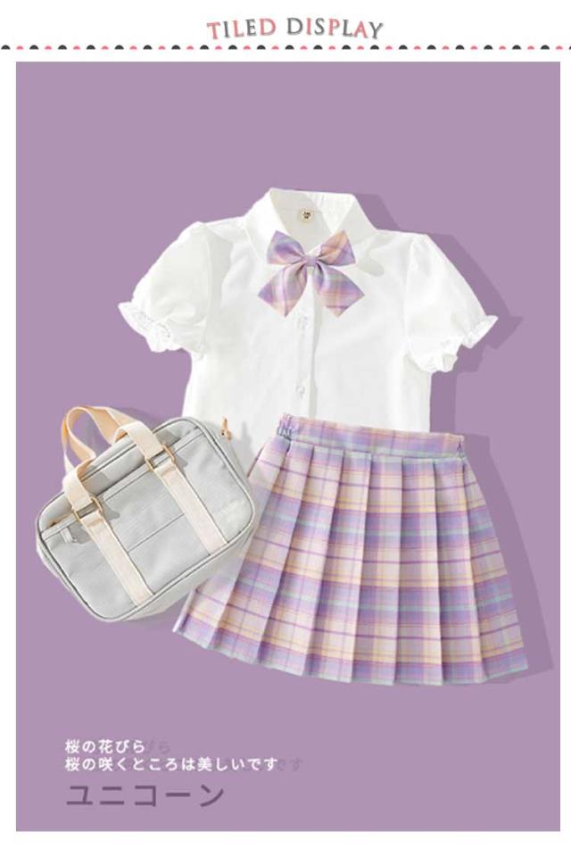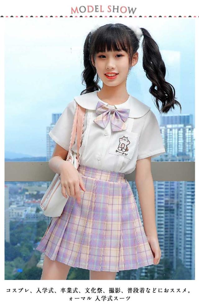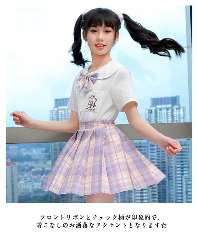 チェック柄 制服 プリーツスカート 制服 フリル袖 制服 小学生 スカート スクール 学生服 キッズ リボン付き 制服 スーツ 上下セット 3点セット 女の子 女子高生 コスチューム 半袖 Aライン 中学生 JK制服 入学式 卒園式 卒業式 通園 通学 発表会 シャツ