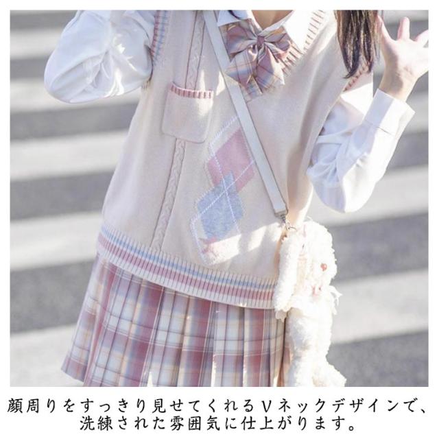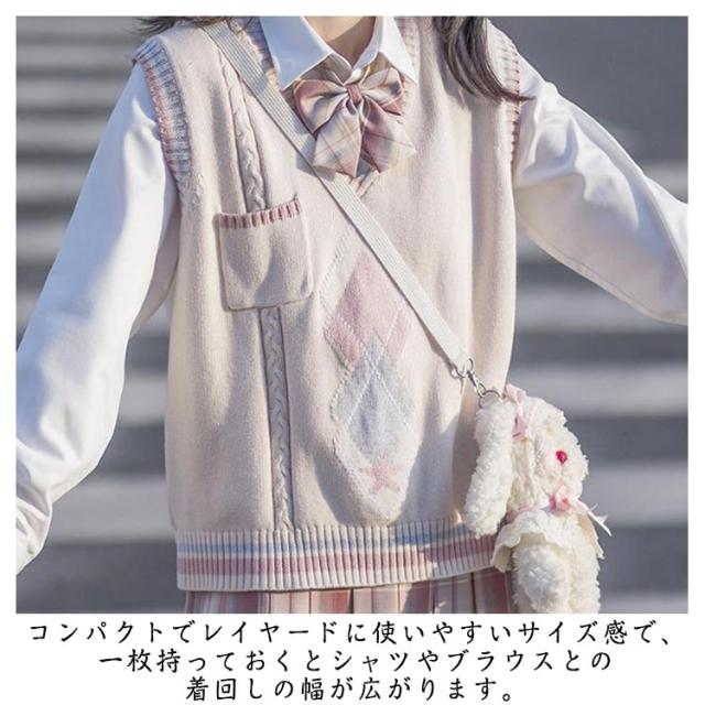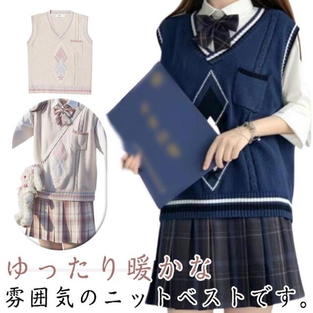 ニットベスト 学生服 レディース Vネック ノースリーブ 学生 ニットベスト セーター トップス 大きいサイズ ゆったり 文化祭 女子高生 高校生 スクールベスト 学園祭 入学式 卒業式
