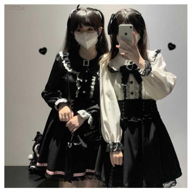 レースブラウス レディース 冬 ハートビジューリボン ブラウス 長袖 量産型 オフショル 参戦服 ロリータ ブラック ホワイト 地雷系 トップス ピンク 秋 おしゃれ レース ハート 学院風 病みかわいい きれいめ お姫様 ゴスロリ