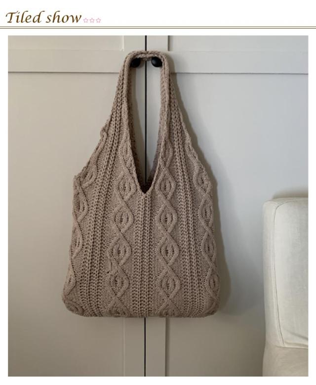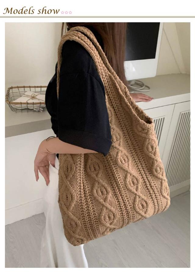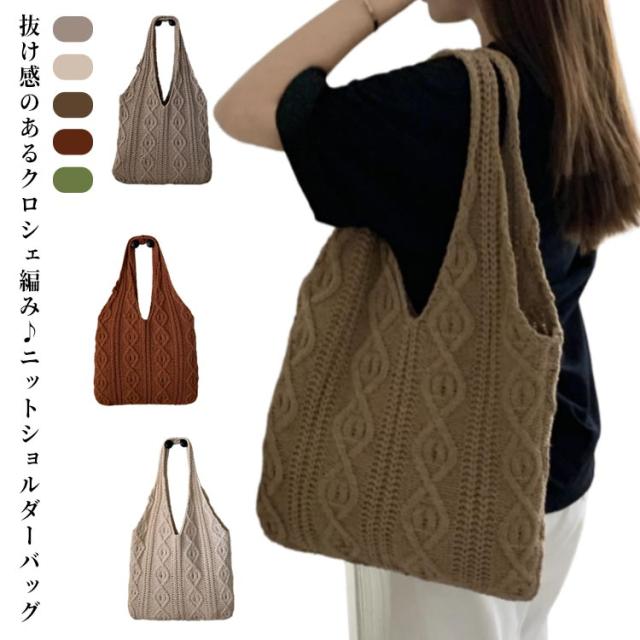 トートバッグ ニットバッグ レディース 手編み 編込み 編上げバッグ 肩掛け 手提げ バッグ ショルダーバッグ トート 夏 カゴバッグ クロシェ編み 普段使い お出かけ カジュアル 大人 かわいい A4 大きめ 春夏秋冬