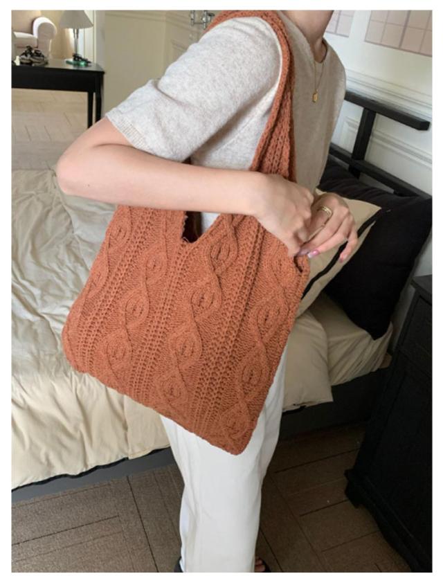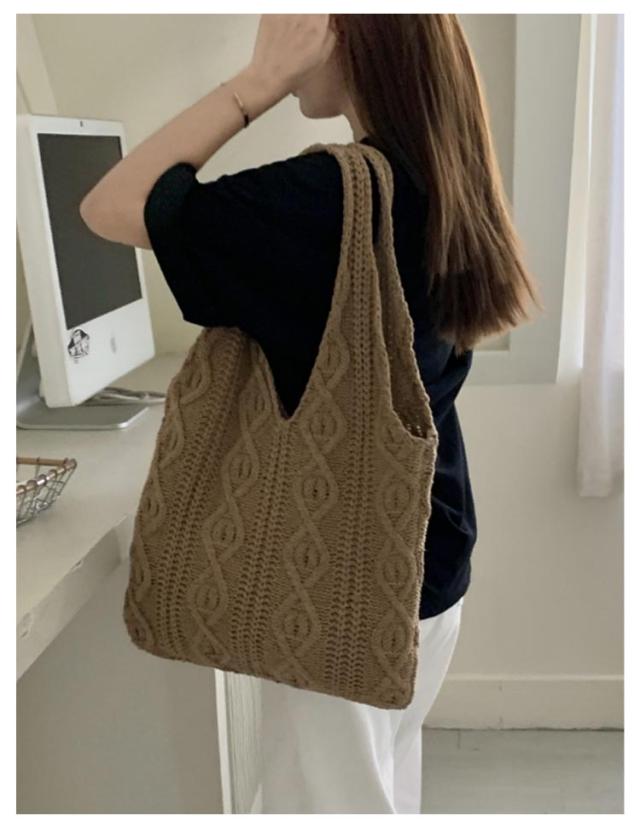 | 抜け感のあるクロシェ編み♪ニットショルダーバッグ 大人かわいい編みデザインと豊富なカラーリングが魅力的なアイテム。 ほどよい大きさで、ファッションアイテムとしてはもちろん、 エコバッグなどの普段使いでも活躍してくれます◎ | |