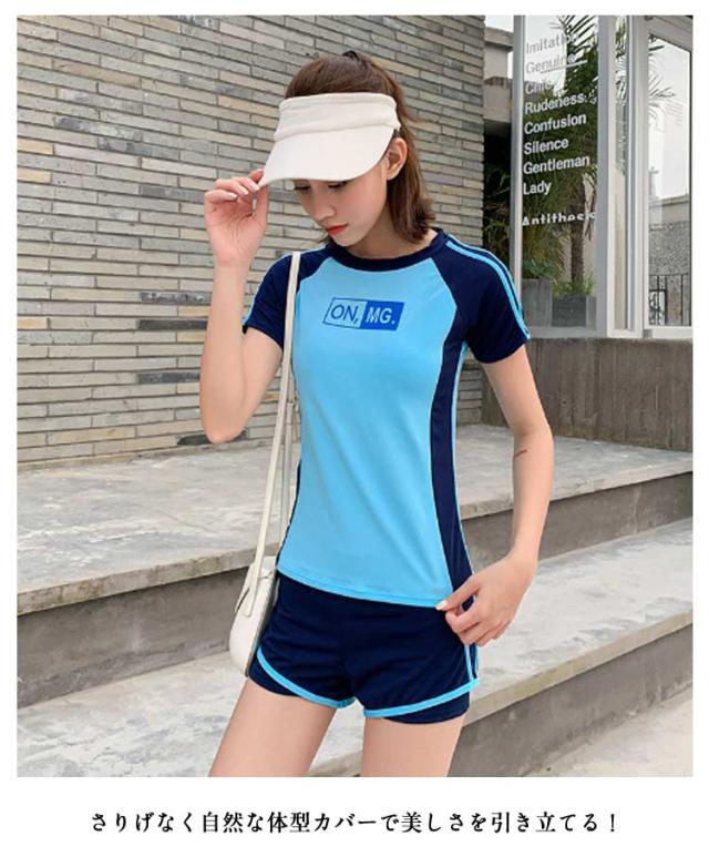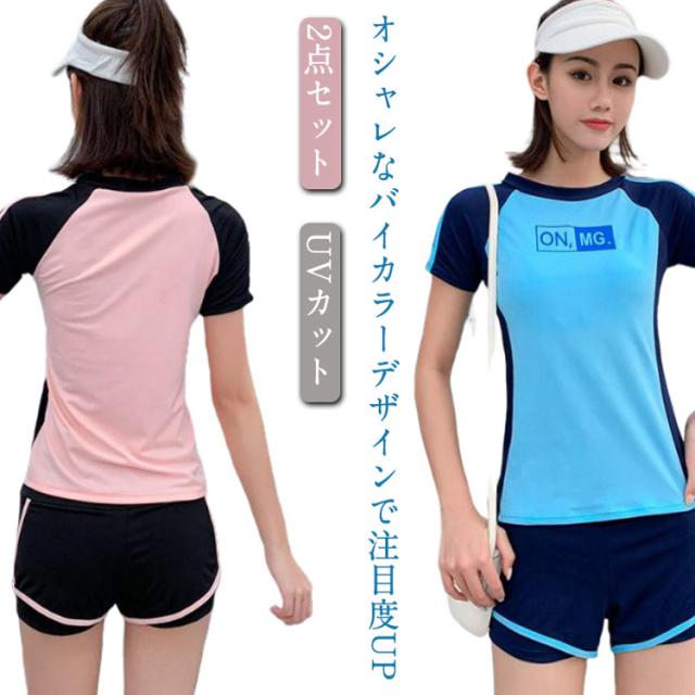 水着 レディース 体型カバー おしゃれ 大学生 2点セット 中学生 高校生 夏 ママ水着 可愛い スクール水着 セパレート 胸パッド付き ビーチ フィットネス 女性 S-XL 女の子 30代 小胸 日焼け防止 UVカット