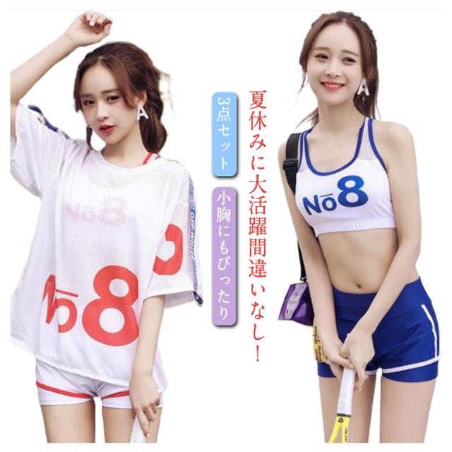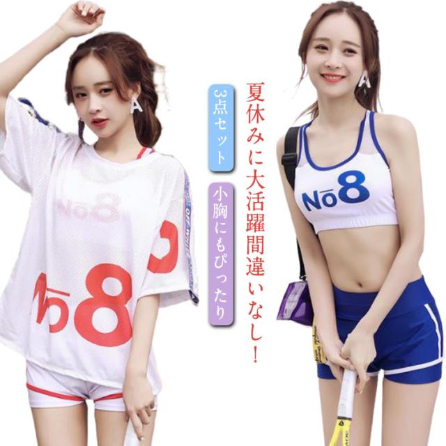 水着 レディース 水着 3点セット 10代 中学生 高校生 20代 学生 ママ水着 体型カバー ビキニ 少女 小胸にもぴったり 韓国 おしゃれ かわいい 半袖 uvカット
