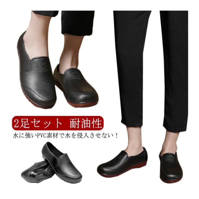 【2足セット】コックシューズ 軽量 キッチンシューズ 防水 厨房靴 疲れない 飲食店 滑りにくい 耐油性 厨房 食品工場用 作業靴 キッチン 厨房靴 調理 スリッポン ガーデニング アウトドア 洗車 掃除 ブラック 23-25.5cm