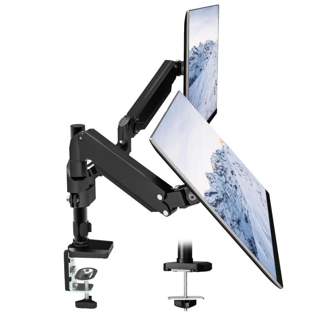 METIYA モニターアーム デュアル 2画面 液晶ディスプレイ アーム ガススプリング式 17-32インチ対応 耐荷重1.5-8kg グロメット式&クランプ式 VESA100*100 (ブラック)