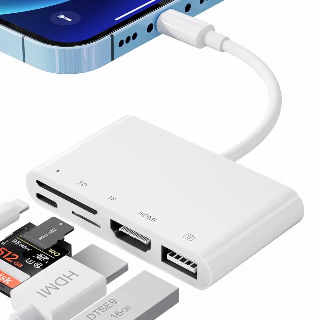 Phone HDMI/SD/TF/USB 変換アダプタ usbカメラアダプタ SD カードリーダー アプリ不要 HDMI 変換ケーブル 高速な写真とビデオ転送 Digital AVアダプタ キーボード USBメモリOTG対応 iOS 9.3以降に対応 [アップグレード版]