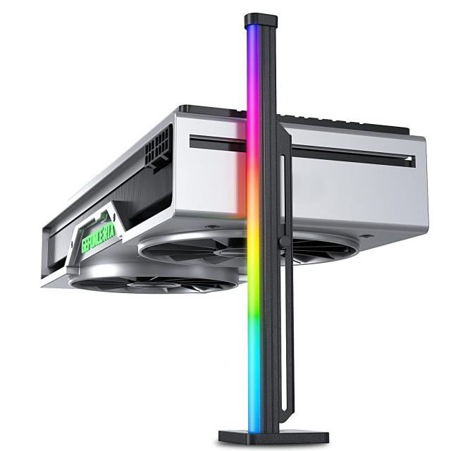 upHere グラボを支え棒 ビデオカードホルダー GPUブレースサポート グラフィックカードを固定 レインボーLED 12V SATA電源 航空アルミニウム金属質感【GH04BK-CF】