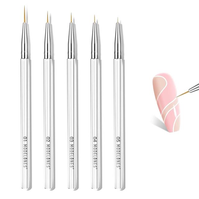 トランスペアレント Modelones ネイルブラシセット ネイル筆セット ジェルネイル用筆セット ふでセット ビルダーグルーブラシ ネイルアートラインブラシ ネイルドットペンなどのネイルアートデザインペンペイントツール フレンチ ライン ジェルネイル用 キャップ付き 5本セッ