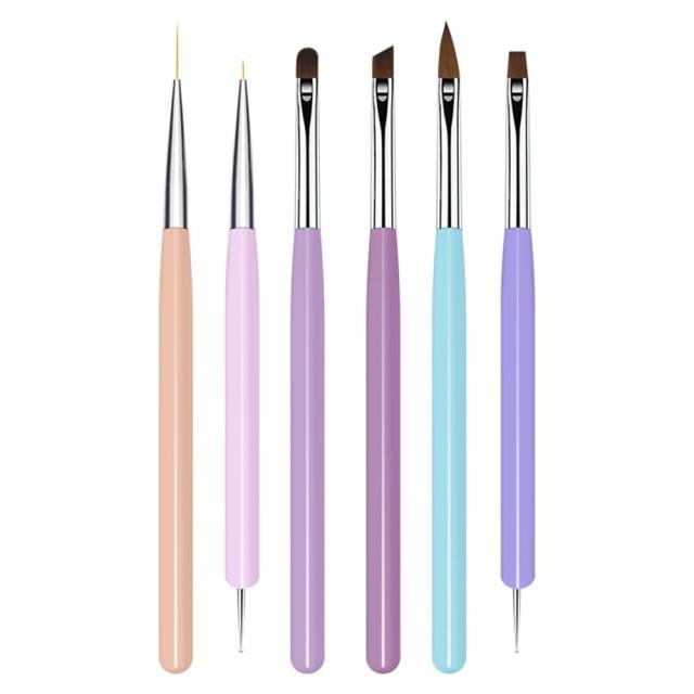 ジェルネイル 筆 ネイルブラシ ネイルアートラインブラシ スクエア・ラウンド・フレンチ・アート・扇子 大小ドットペン付き ネイル用品 6本セット
