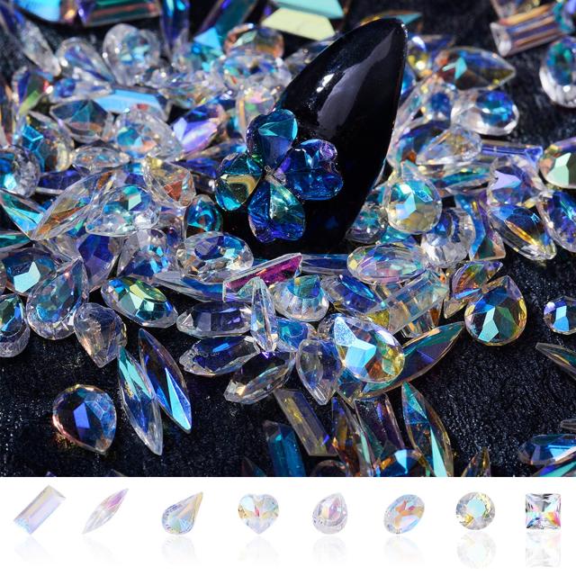 A 160個 ネイル ラインストーン キラキラ AB色 特殊 大粒 ネイル クリスタル 8種類 大容量 ネイルシールセット ネイルパーツ ストーン オーロラ クリア 立体 ネイルストーンパーツ ネイルラインストーン 3Dネイルデザインパーツ キラキラオーロラネイルアクセサリー 輝かしい