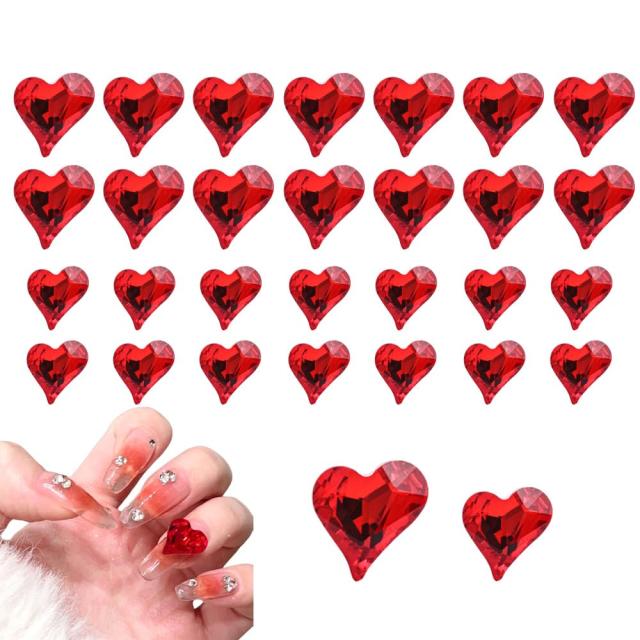 レッド(30個セット) Chisafly ネイルパーツ ハート 大きい 2種類 30個セット ネイルパーツ ストーン ハート ネイルストーン ハート クリスタル キラキラ 8mm 11mm(レッド)