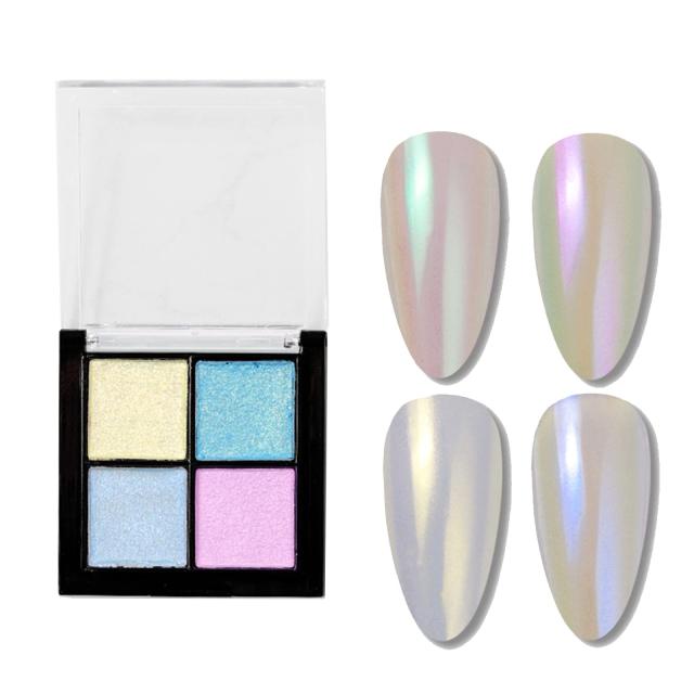 I ミラーパウダー パレット 固形 ネイルパウダー 4色セット ミラーネイル パウダー ネイルアート ジェルネイル レジン メタリックパウダー チップ付き (I)