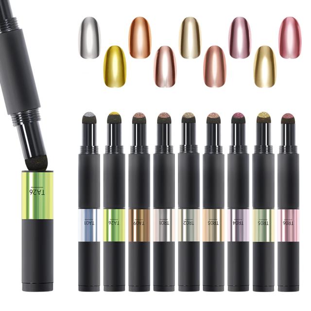 TR01 & TR02 ジェルネイル スティックタイプミラーパウダーペン ダブルカラー マジックパウダーペン ミラーパウダー パウダーアート ネイルアート ネイルパウダー UV・LED対応(TR01 & TR02)