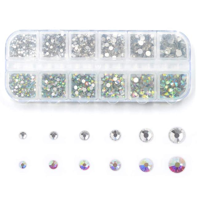 メーリンドス ネイル3dデザインパーツ フラットバックラインストーン ss6 ss8 ss10 ss12 ss16 ss20 ホワイト/AB色クリスタル 長いケース付け(02)