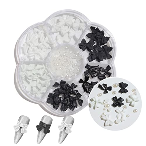 黒白リボン ネイルパーツ リボン 3D 立体 ブラック ホワイト 蝶結び 半円パール ネイルアート ジュエリーパーツ ハンドメイド デコパーツ レジン用 (黒白リボン)