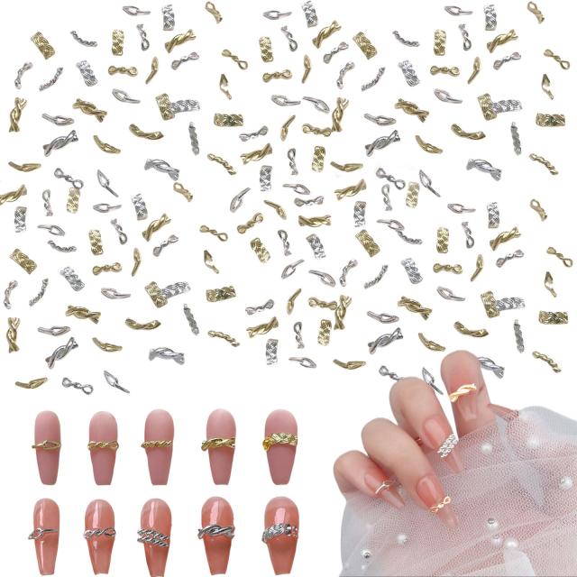 ネイルパーツ 100個セット 3D 立体 ネイルパーツ ゴールド シルバー 可愛い キラキラ ネイルデコパーツ ジュエリーパーツ メタルパーツ 手芸 ハンドメイド ランダム形