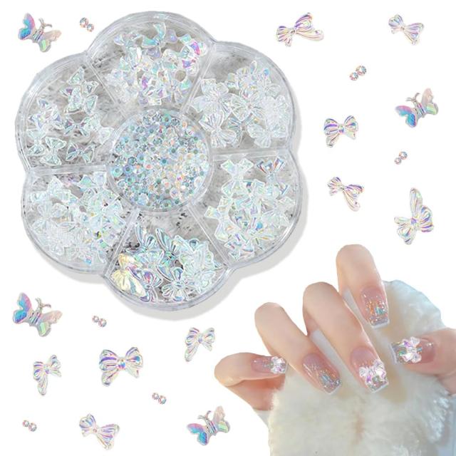 ネイルパーツ ネイルアート ジュエリーパーツ ストーン ジェルネイルパーツ 3D 立体ネイルデコパーツ 蝶結び グミ風 オーロラ透明 ぷっくり ネイルデコレーション お花蝶 収納ケース付き かわいい