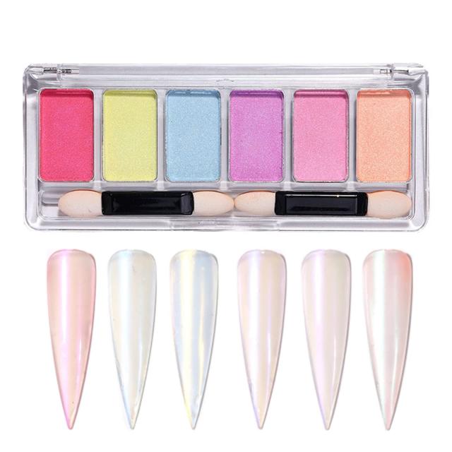 オーロラ ミラーパウダー パレット ネイルパウダー 固形 6色セット ミラーネイル パウダー ゴールド シルバー ピンク ジェルネイル ネイルアート用 レジン メタリックパウダー チップ付 (オーロラ)