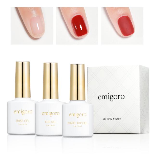 ベース&トップ&マットコート emigoro ジェルネイル トップコート ベースコート マットコート セット ノンワイプマット 拭き取り不要 ノンワイプジェル マット 10ml/本 UV・LED対応 3本入り ベースジェル