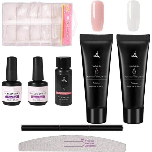 ジェルネイル セット 長さだし ポリジェルセット ネイルポリジェルセット オールインワンマニキュアキット ポリジェルマニキュアスーツ 15ml UV/LED対応 長さだしチップ 簡単に長さだし 爪指延長接着剤 Poly Gel