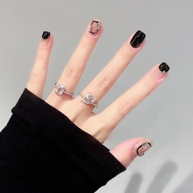 F519# Fuyunohi ネイルチップ 付け爪 黒 短め 3Dデザイン エレガント 優雅 韓国 ネイルチップ 成人式 ネイルチップ 短め ネイルチップ シール 強力 つけ爪チップ ネイル用品 nail 24枚セット (F519#)