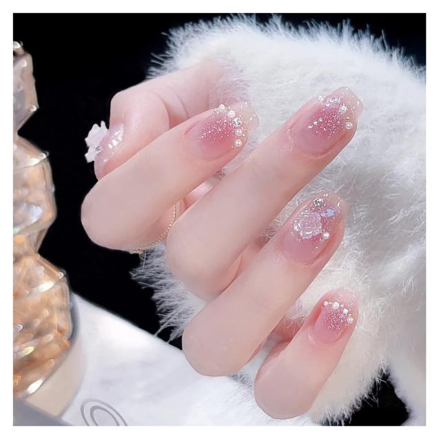 MJ303 Lwenjing ネイルチップ 付け爪 チップ 3D ネイルチップ 手作りネイルチップ 結婚式ネイルチップ かわいい 短め ネイルチップ 人気 和風 花嫁ネイル 光沢 つけ爪 24枚入 (MJ-303)