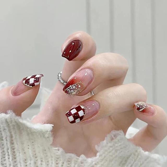 細い点滅盤 【ネイルアートの道具セットを贈る】AAGWW ネイルチップ ベリーショート 付け爪 ?い 成人式 マット つけづめ つけ爪 付け爪 ネイルちっぷ かわいい 美甲 用品 工房 糊デザイン(色: 細い点滅盤、製品の内容:24枚ネイルアート+糊)