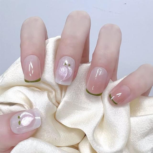 【カラー】:グラデーションフレンチピーチ【サイズ】:短い 【製品の内容】:甲片24枚+糊1本、ネイルアートの道具セットを贈る(ゼリーゼリー12粒*2枚+爪すり*1+オレンジの棒*1+アルコール洗浄バッグ*1)