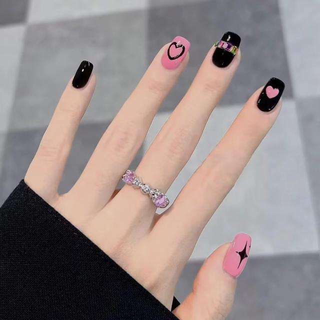 【流行ネイルシート】不思議で可愛いピンクとブラックを基調に、人気のショートネイルチップ。