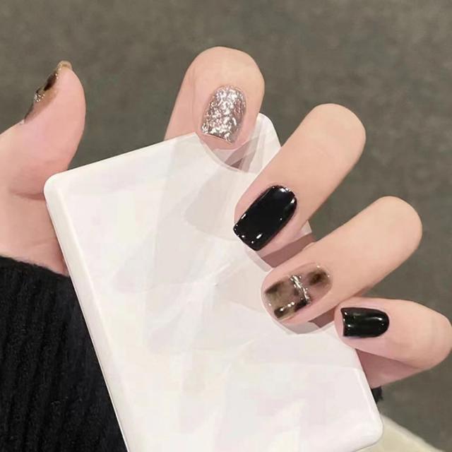 NR705 ネイルチップ ショート 24枚セット 黒 付け爪 地雷系 韓国 量産型 3D爪 サブカル おしゃれ 短め ネイルシール 繰り返し使える ファション ネイルチップ シール 耐久 便利 nail 両面テープ48個付き 個性的 かっこいい (NR705)