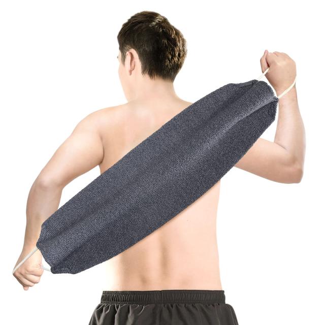【大きな背中も簡単・楽々に洗えます】タオルの両端に持ち手用の輪がついていますので、ボディーブラシでは届きづらい箇所も簡単・楽な姿勢で洗うことができます。