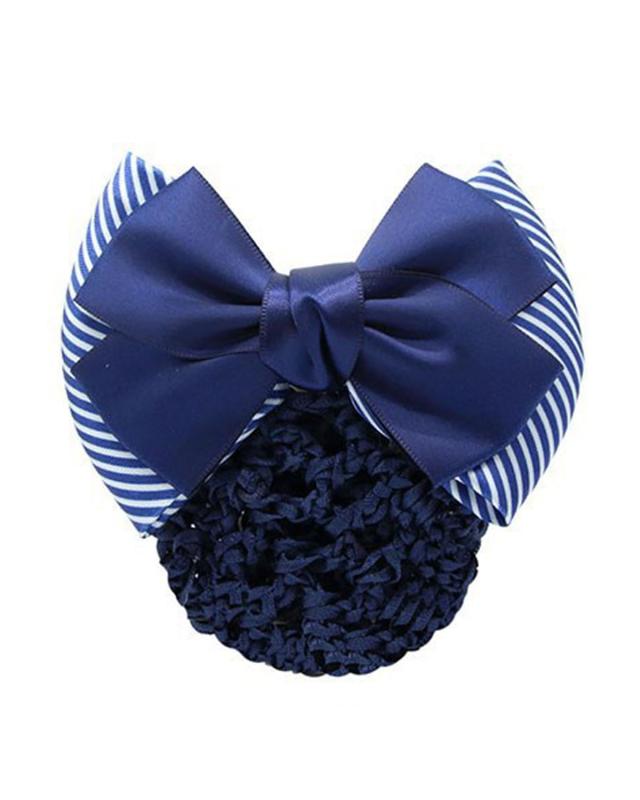 ブルー しま模様 YFFSFDC シニヨンネット バレッタ ネット付き お団子ネット 髪ネット 髪留め シンプル 就活 卒業式 デート ヘアアクセサリー (ブルー しま模様)