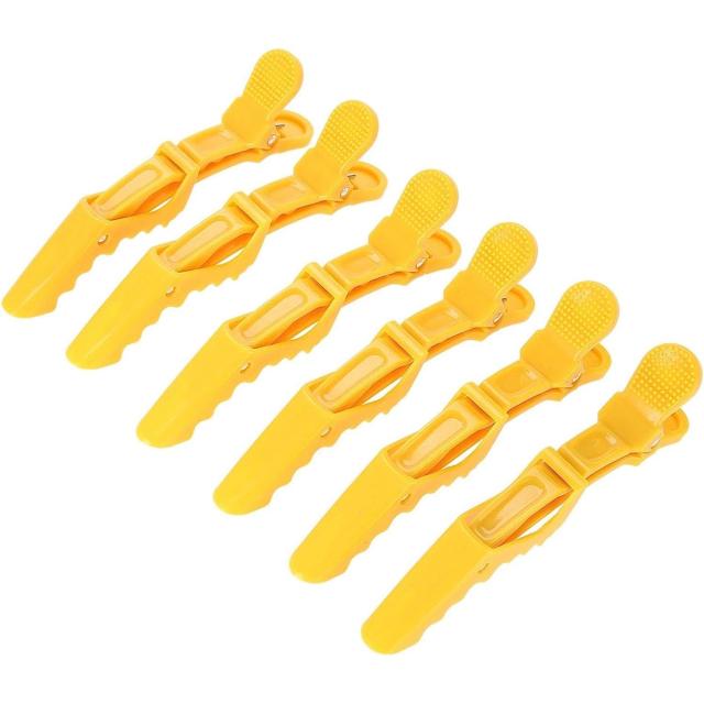 イエロー/6本 KISARGワニクリップ ダッカールメンズ サロンヘアクリップ ドラゴンクリップ スタイリング ヘアピン バレッタ髪留め 理髪 美容 サロン専用 6個セット入り イエロー