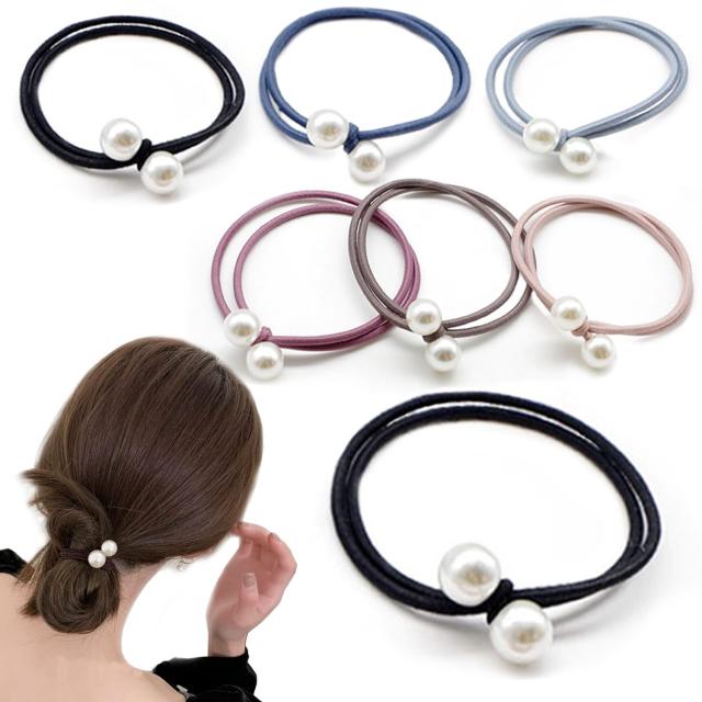 【エレガントな印象に演出する髪ゴム10本】パール2粒と2重ゴムを組み合わせたエレガントなヘアゴムセット。