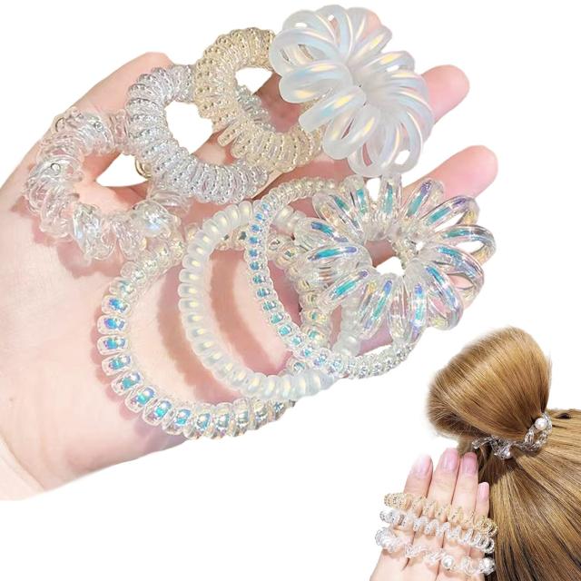 [アオラー]Aollaa【オシャレ8個ミックス】ヘアゴム スプリングヘアゴム 髪ゴム おしゃれヘアアクセサリー 跡がつかない クリア オーロラカラー 上品 エレガント コイルヘアゴム スプリングゴム スパイラルリングゴム パール髪飾り