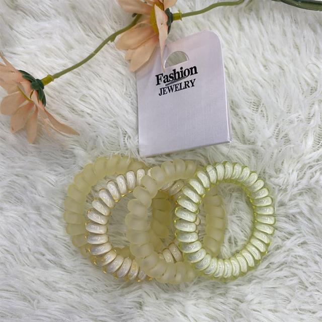 2.【いろいろな色を選ぶことができます】サッと簡単にしっかりととまるスパイラルリングヘアゴムの4点セットです。