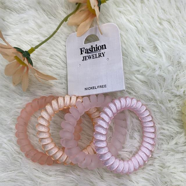 2.【いろいろな色を選ぶことができます】サッと簡単にしっかりととまるスパイラルリングヘアゴムの4点セットです。