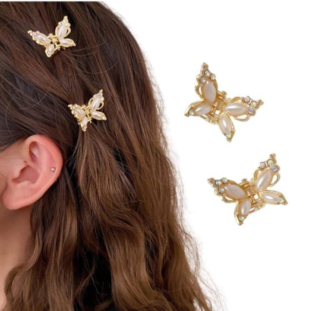ゴールド ヘアクリップ ミニ 蝶々 2個セット バンスクリップ 小さめ パール 髪留め クリップ 髪飾り 可愛い キラキラ ヘアアクセサリー ヘアピン 子供 女の子 レディース (ゴールド)