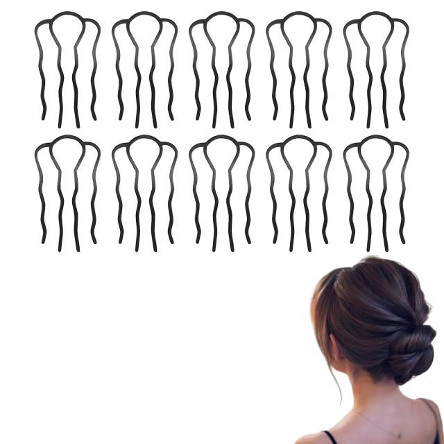インナーヘアアクセ (10個セット) 夜会巻きコーム かんざし お団子 簡単 まとめ髪 夜会巻き ヘアアレンジ 髪飾り ヘアアクセサリー ブラック