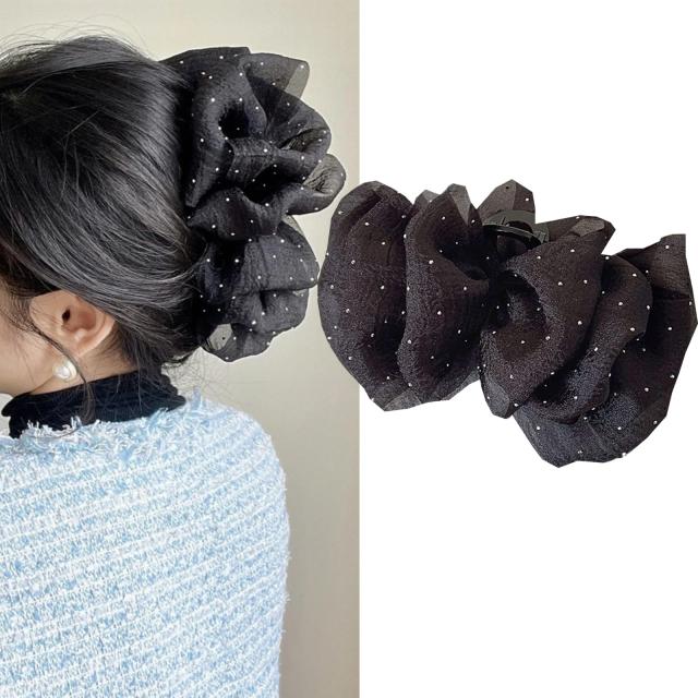 HAPVITAL フリル リボン バンスクリップ 大きめ 可愛い ヘアクリップ 大人っぽい ヘアアクセサリー フリル リボン バンスクリップ 大きめ 可愛い ヘアクリップ 大人っぽい ヘアアクセサリー (ブラック)