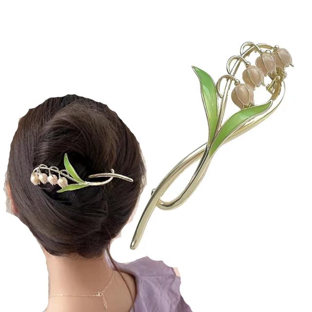 【 バンスクリップ バレッタ スズラン ヘアクリ】材質:合金製で、柔軟性、耐久性に優れ、傷つきにくく、色あせしにくい。