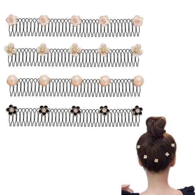 Liroyal ヘアコーム ワイヤーコーム【4個セット】 後れ毛どめ ワイヤーコーム コーム 37本櫛 簡単 まとめ髪 盛り髪 髪飾り ヘアアクセサリー 花 パール 可愛い おしゃれ 髪留め 髪細め用 コーム 結婚式 卒業式 パーティー 和装 ヘッドドレス 子供 レディース