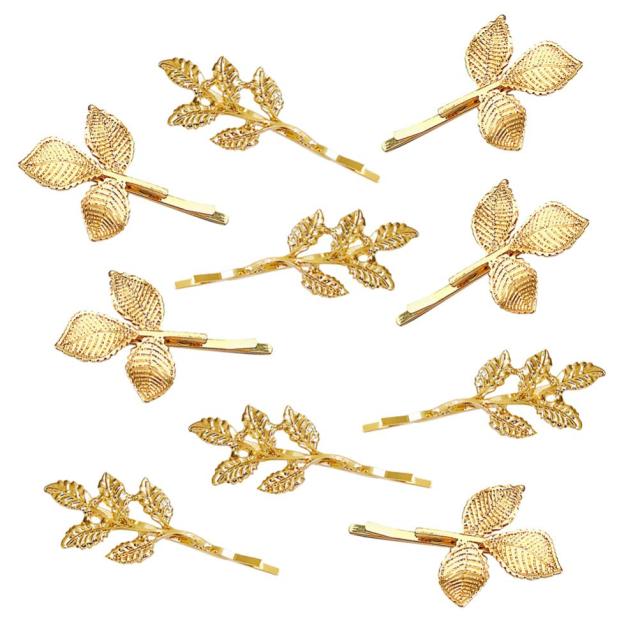 Frcolor ヘアピン ゴールド スリーピン 葉の型 ぱっちん留め 前髪 ヘアクリップ 女の子 ヘアアクセサリー 金 おしゃれ 10本セット(混合パターン)