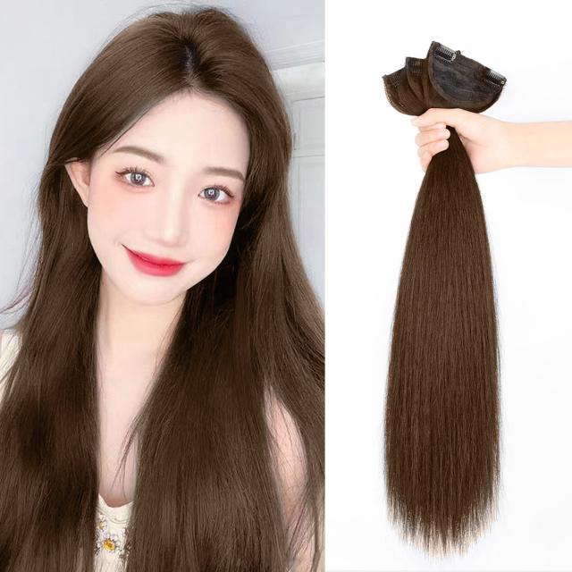 直-50cm_ライトブラウン Fuyunohi エクステ ワンタッチエクステ 3枚セット 50cm ライトブラウン ヘアエクステ ロング エクステ ストレート hair extension えくすて つけ毛 ポイントウィッグ ワンタッチ レディース ファクション 小物 おしゃれ