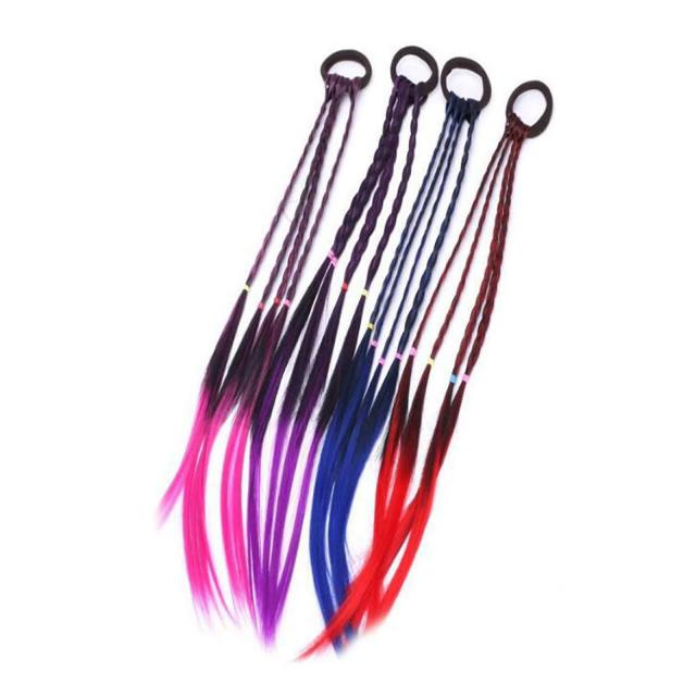 GOODCHI ヘアエクステ 編み込み 4色 カラフル かわいい おしゃれ ウィッグ キッズ 三つ編み グラデーションカラーエクステ