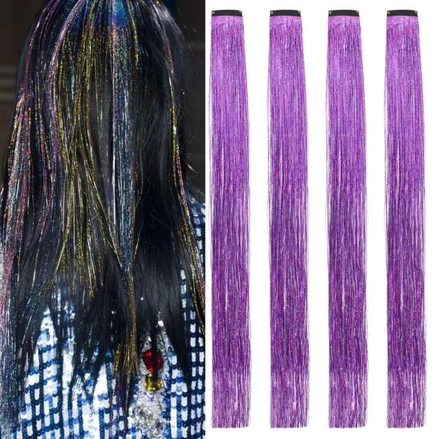 50cm_ライトパープル BUMMSEVEN ヘアティンセル カラーエクステ ウィッグ ヘアエクステ 髪飾り キラキラ 輝く ティンセル ヘアエクステンション 子供や女性にも適しています ダンス お祭り ハロウィン パーティー 4本セット (ライトパープル)