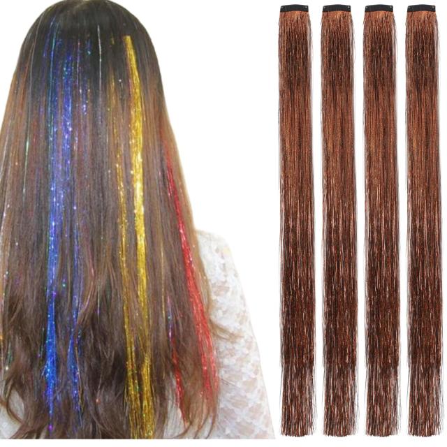 50cm_コーヒー色 BUMMSEVEN ヘアティンセル カラーエクステ ウィッグ ヘアエクステ 髪飾り キラキラ 輝く ティンセル ヘアエクステンション 子供や女性にも適しています ダンス お祭り ハロウィン パーティー 4本セット (コーヒー色)