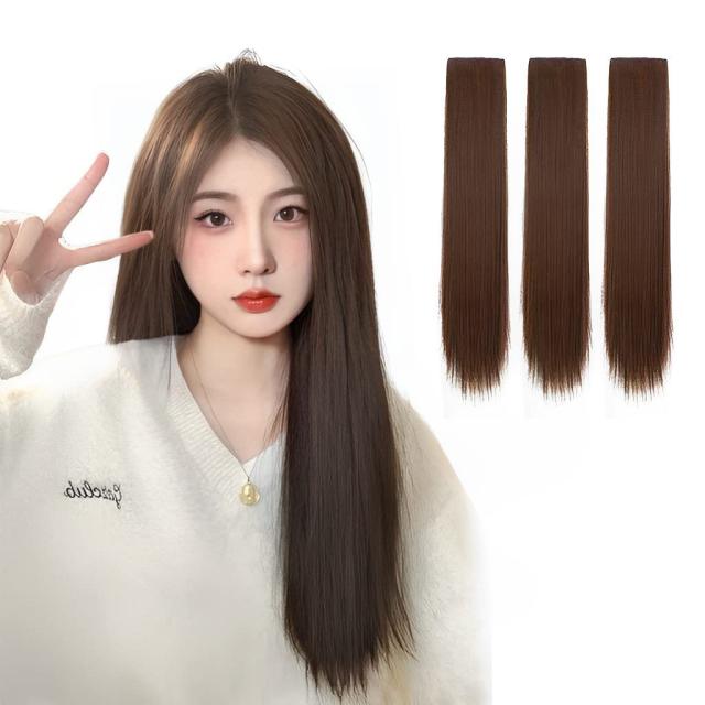 ISHR エクステ 襟足ウィッグ 3枚セット ロング 自然 耐熱 組み合わせ自由 ストレート ワンタッチクリップ付け 装着簡単 (50cm, 直/ライト・ブラウン)