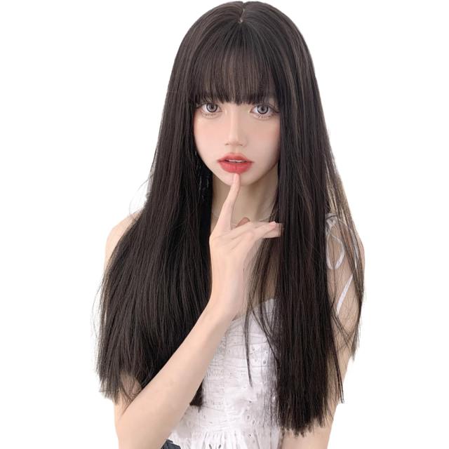 ふかし加工をして、前髪のふわふわ感を高めるだけでなく、小さな顔の効果も実現できるロングストレート黒髪ウィッグです。